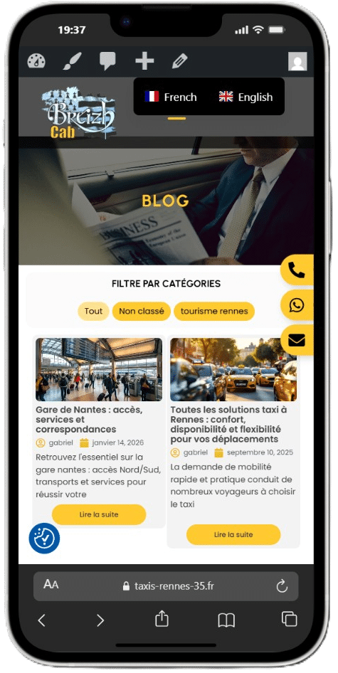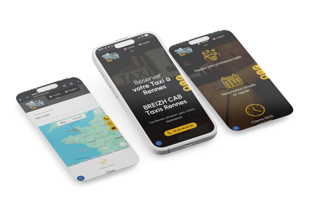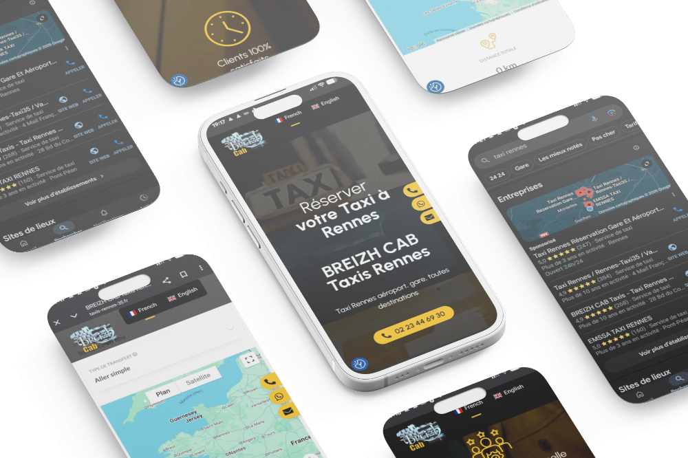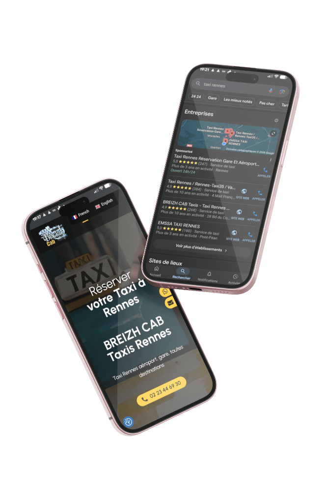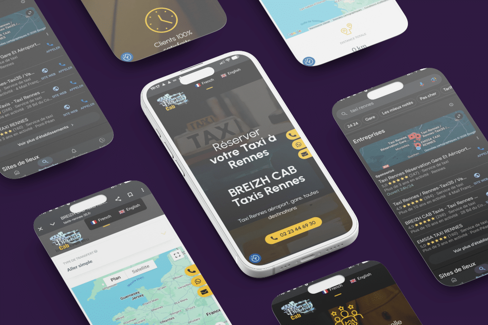 Activation de notre levier Caplocal pour le référencement géographique. Nous avons travaillé la sémantique locale (ex: "Taxi conventionné Rennes", "Navette aéroport Rennes") et optimisé la Fiche Google pour capter les recherches d'intention immédiate