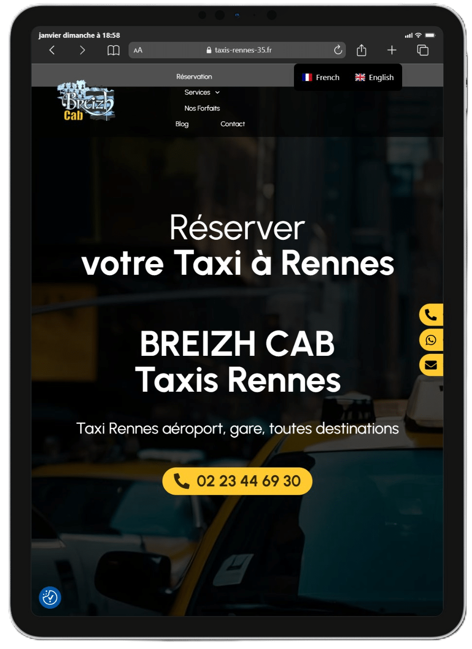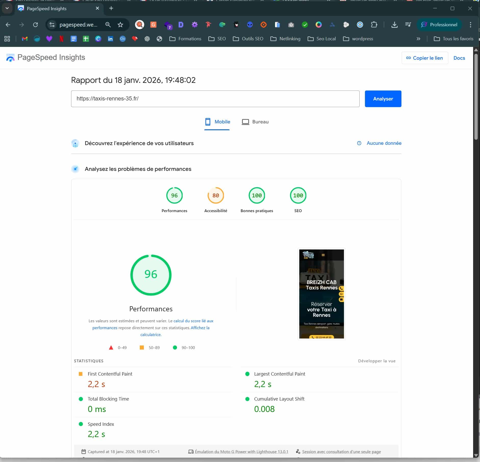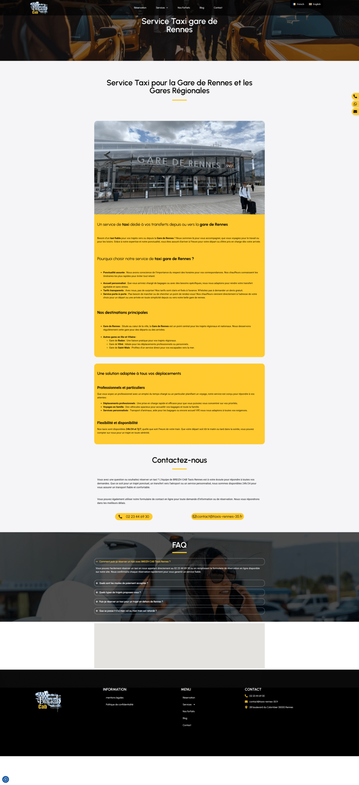 Activation de notre levier Caplocal pour le référencement géographique. Nous avons travaillé la sémantique locale (ex: "Taxi conventionné Rennes", "Navette aéroport Rennes") et optimisé la Fiche Google pour capter les recherches d'intention immédiate